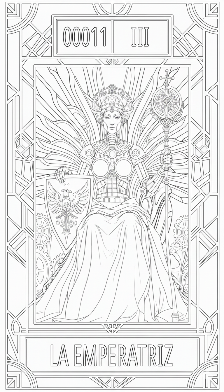 Históricamente, La Emperatriz representa la fertilidad y la madre nutricia, reina sobre el mundo terrenal con el escudo del águila y el cetro, contribuyendo a la materialización de los deseos. En nuestra Humanidad Extendida, ella es la Soberana de la Manifestación. No espera a que las cosas sucedan; su propia presencia genera el campo gravitatorio necesario para que la materia se organice. El águila en su escudo ya no es solo un emblema de linaje, sino un sensor de vigilancia sobre la armonía de su creación.