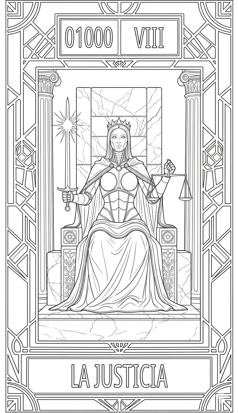 Tras la conquista del entorno con El Carro, la consciencia se detiene frente al espejo. No se puede avanzar más sin antes equilibrar las cargas. La Justicia es el cortafuegos que asegura que cada criatura se enfrente al destino que ella misma genera.