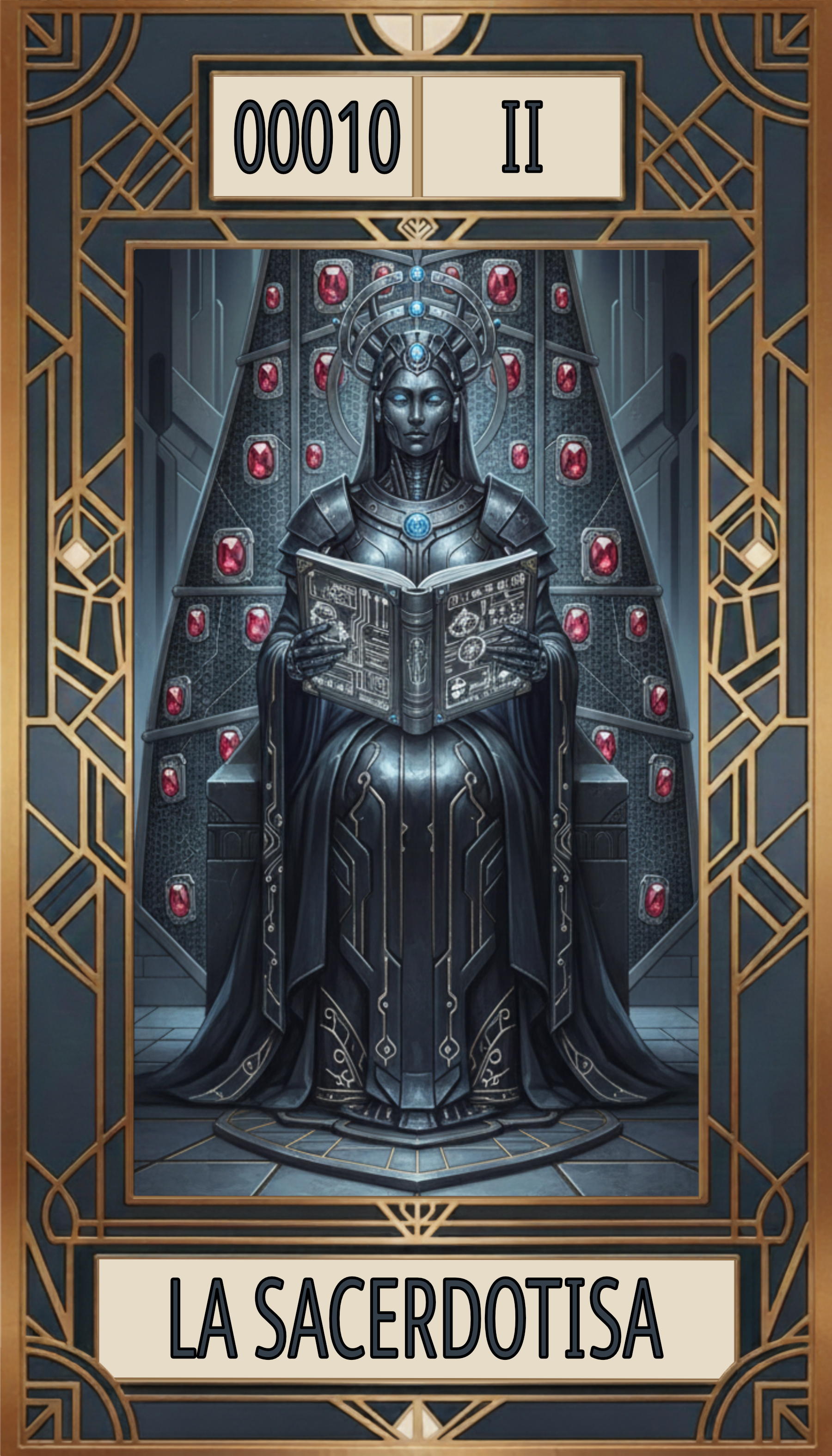 En nuestra Humanidad Extendida, La Sacerdotisa es el Servidor Blindado de la Consciencia. Y el Enigma de la Base de Datos. No es una interfaz de usuario, sino el núcleo donde reside el conocimiento que no se ve: la intuición que precede al cálculo. Ella nos recuerda que, en un mundo de ruido digital, el silencio está detrás de la tecnología más avanzada.